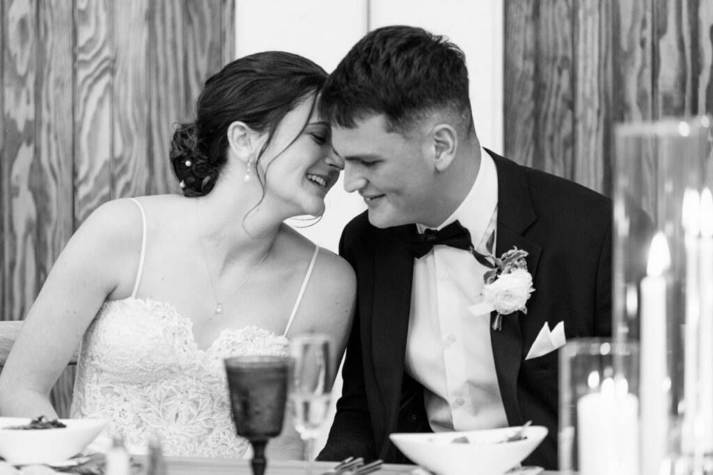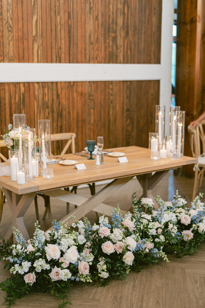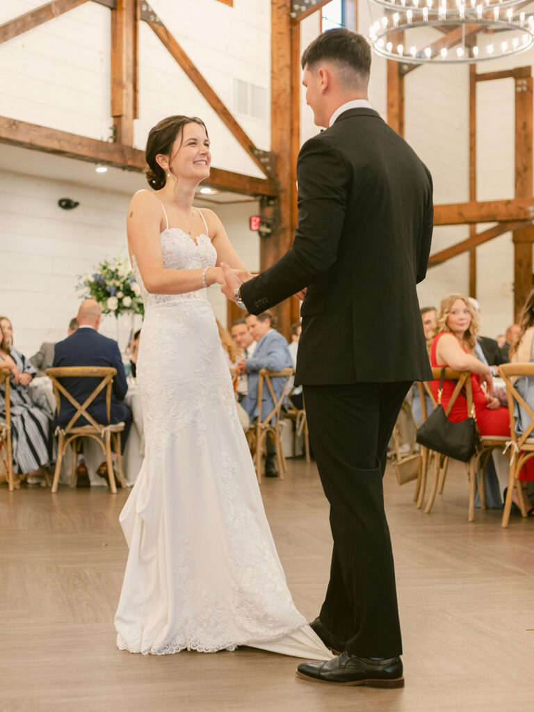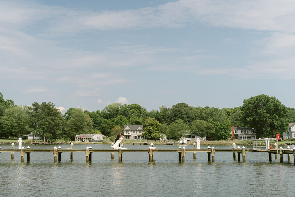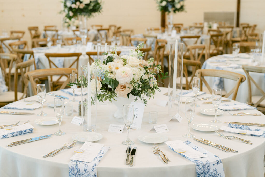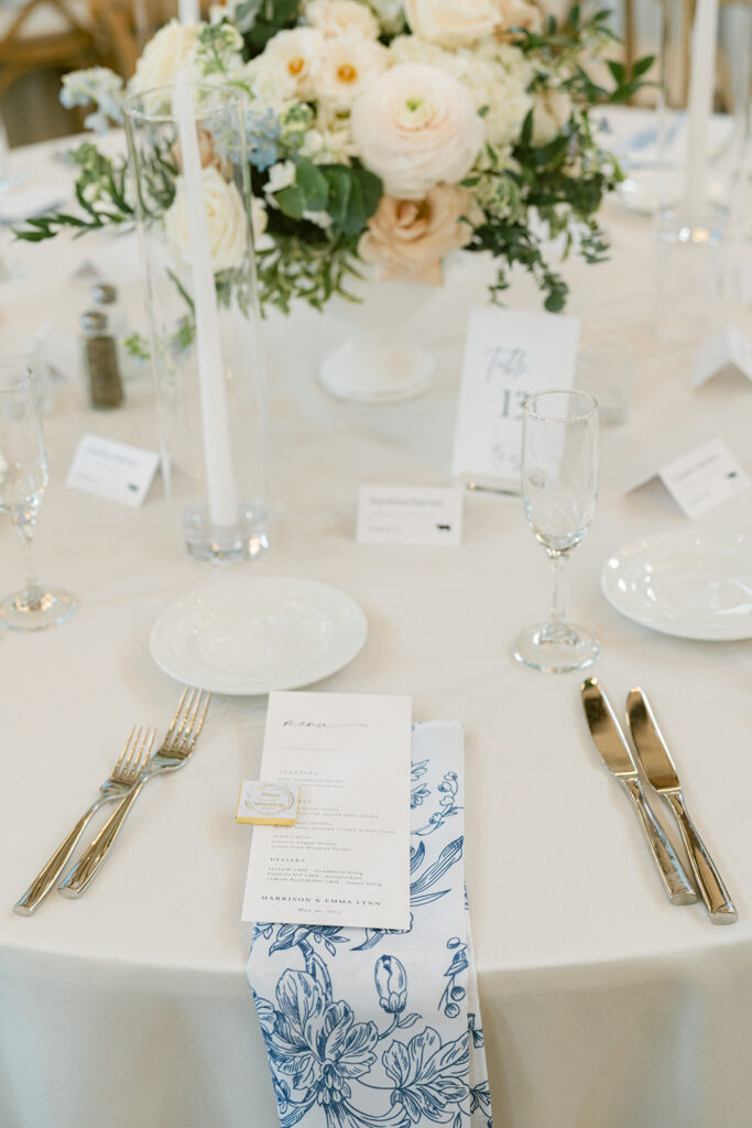 The barn at Kent Island Resort created a warm, welcoming setting for the reception. Classic tablescapes were elevated with floral runners and soft spring tones, while guests enjoyed a celebration full of laughter, movement, and connection. The design was timeless — but never too serious. Every detail reflected the couple’s joyful approach to life and love.