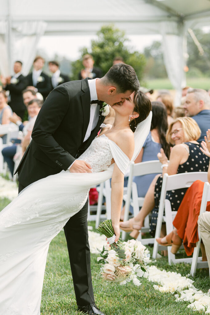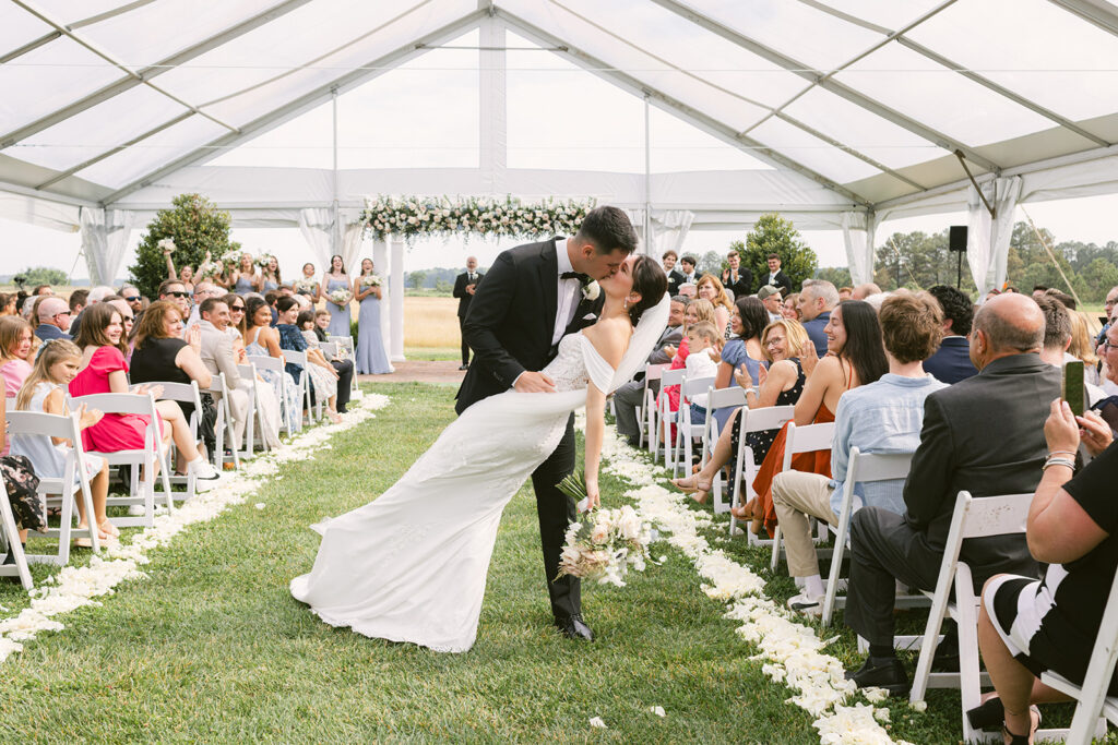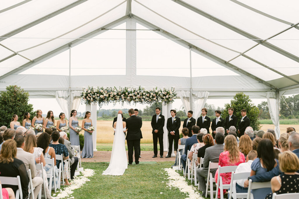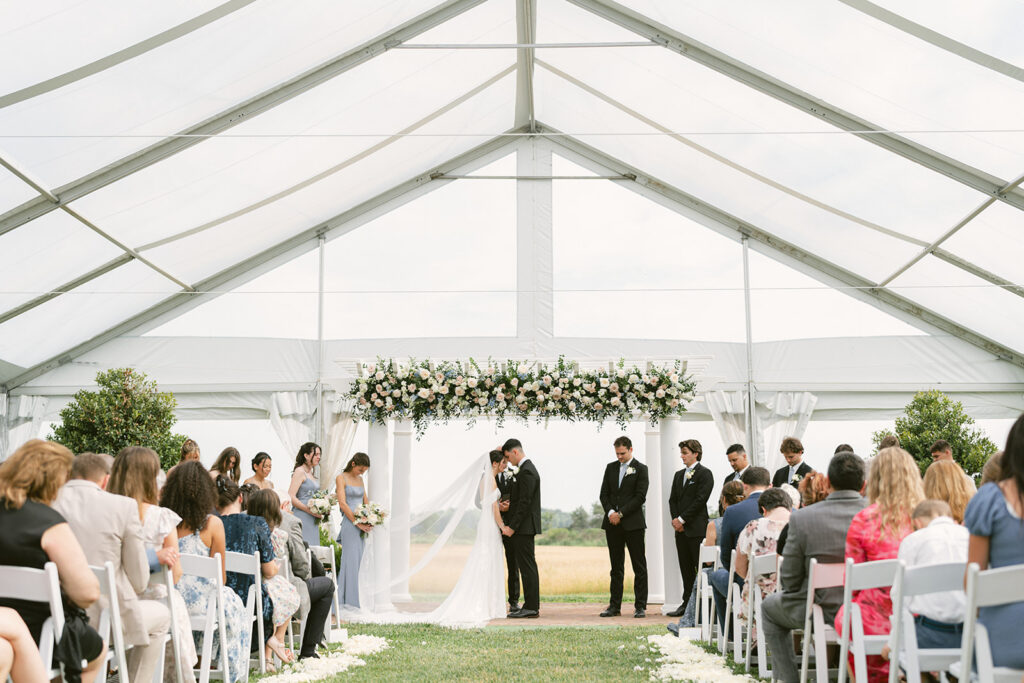 Originally envisioned as an open-air ceremony, the couple made the call to shift under a clear-top tent — a Plan B executed with precision. The result? A soft, light-filled atmosphere that still felt open and connected to nature, but with just the right protection from the unpredictable spring skies.